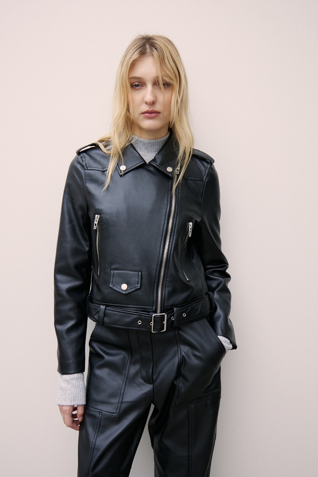 Chaqueta de P.U, no trae detalle en la espalda