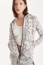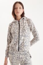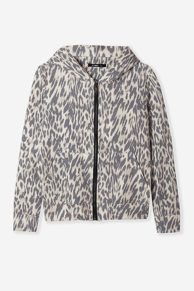 Campera con capucha de rustico con ly print leopardo, cierre con deslizador personalizado y badana de eco cuero