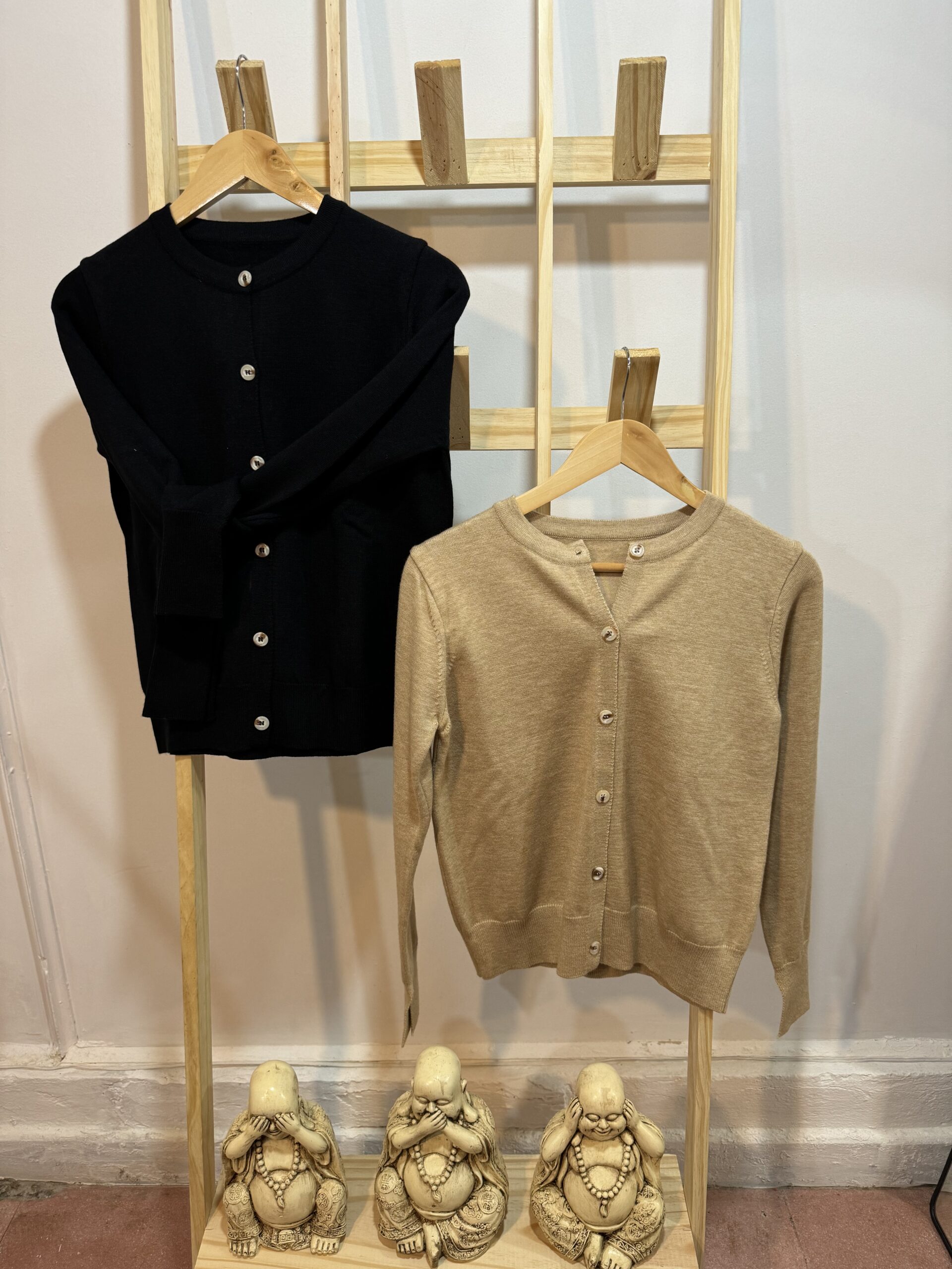 Cárdigan corto con botones y tajo en el puño de la manga como detalle