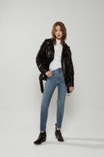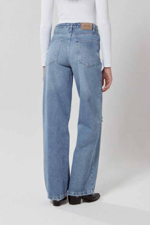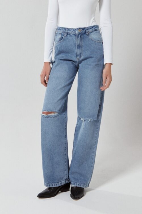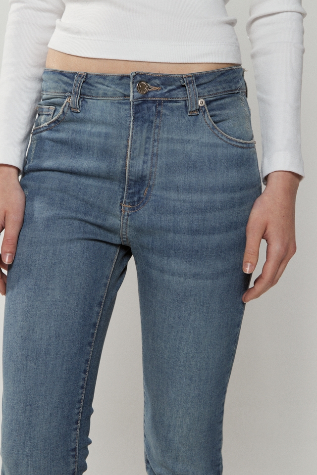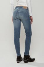 Jean calce skinny elastizado. Tiro medio. Cinco bolsillos.