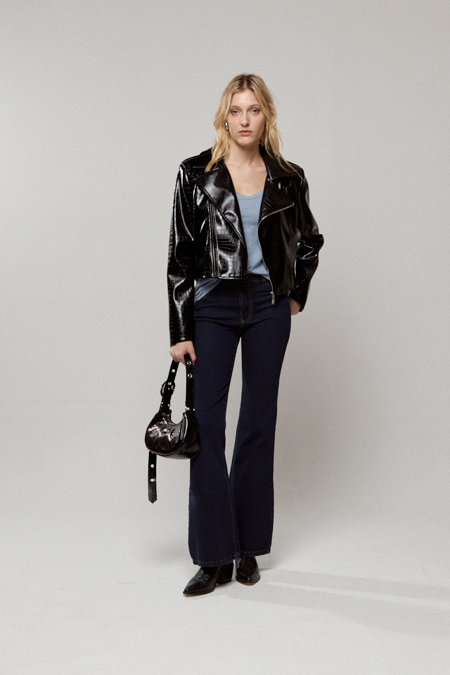 Jean oxford elastizado. Cinco bolsillos.
