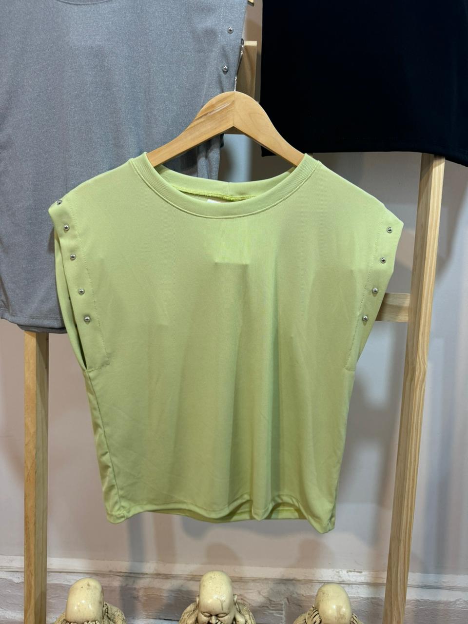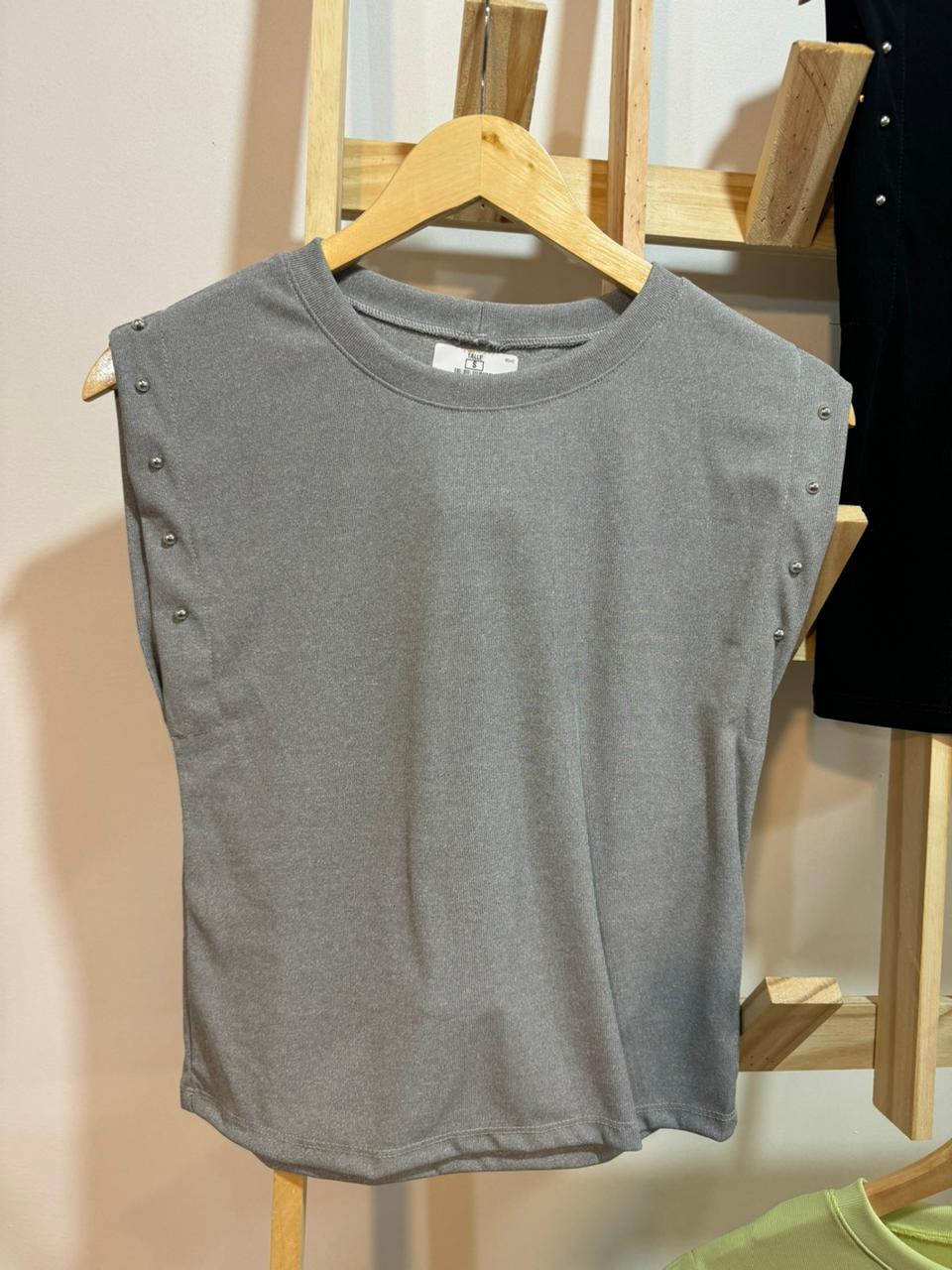 Remera de micro morley con detalle en tachitas.