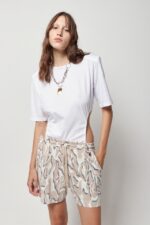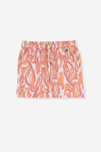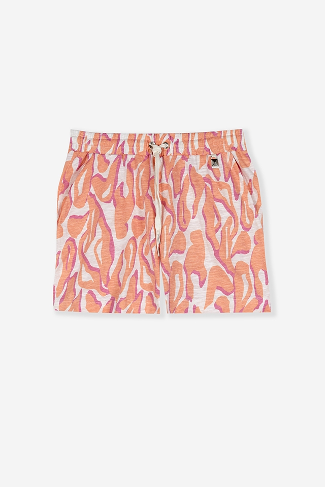 Short de flame print, cintura con elastico y cordon regulable, avios personalizados.