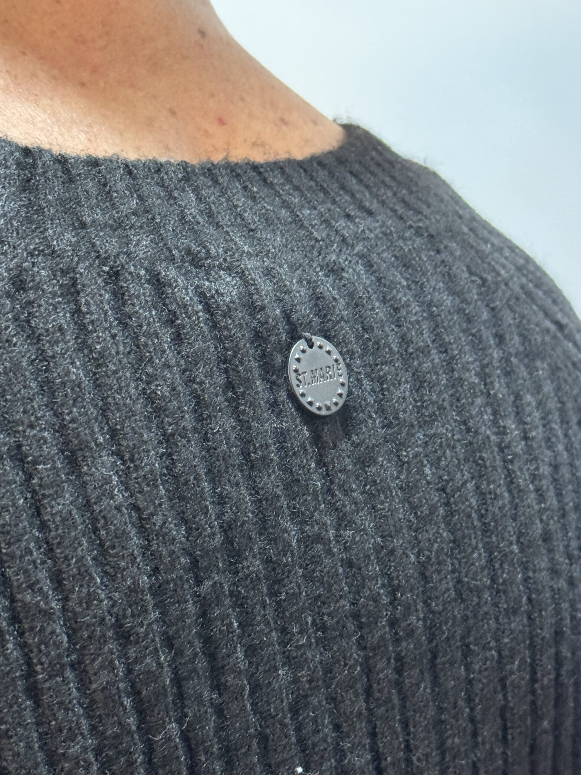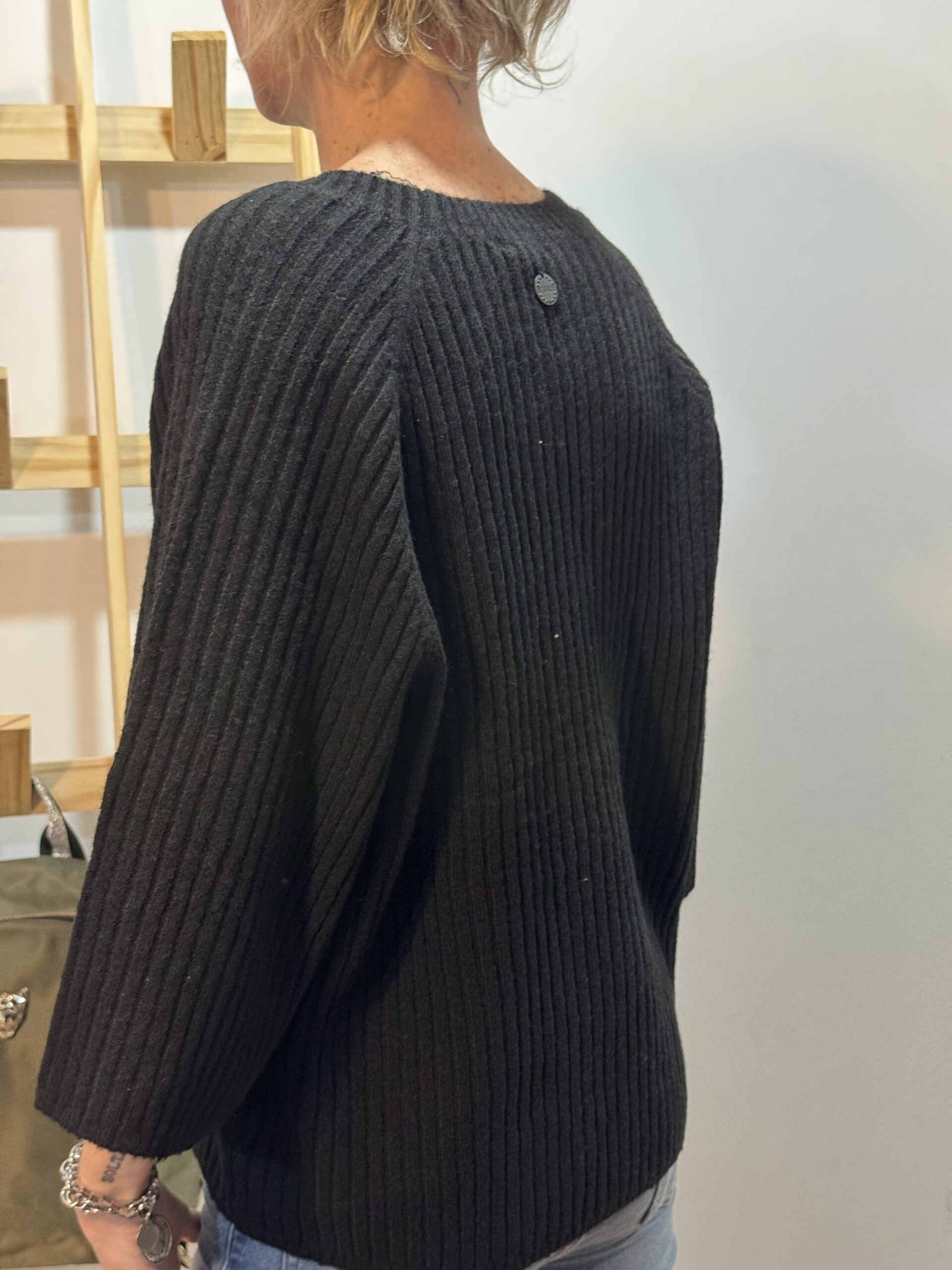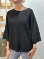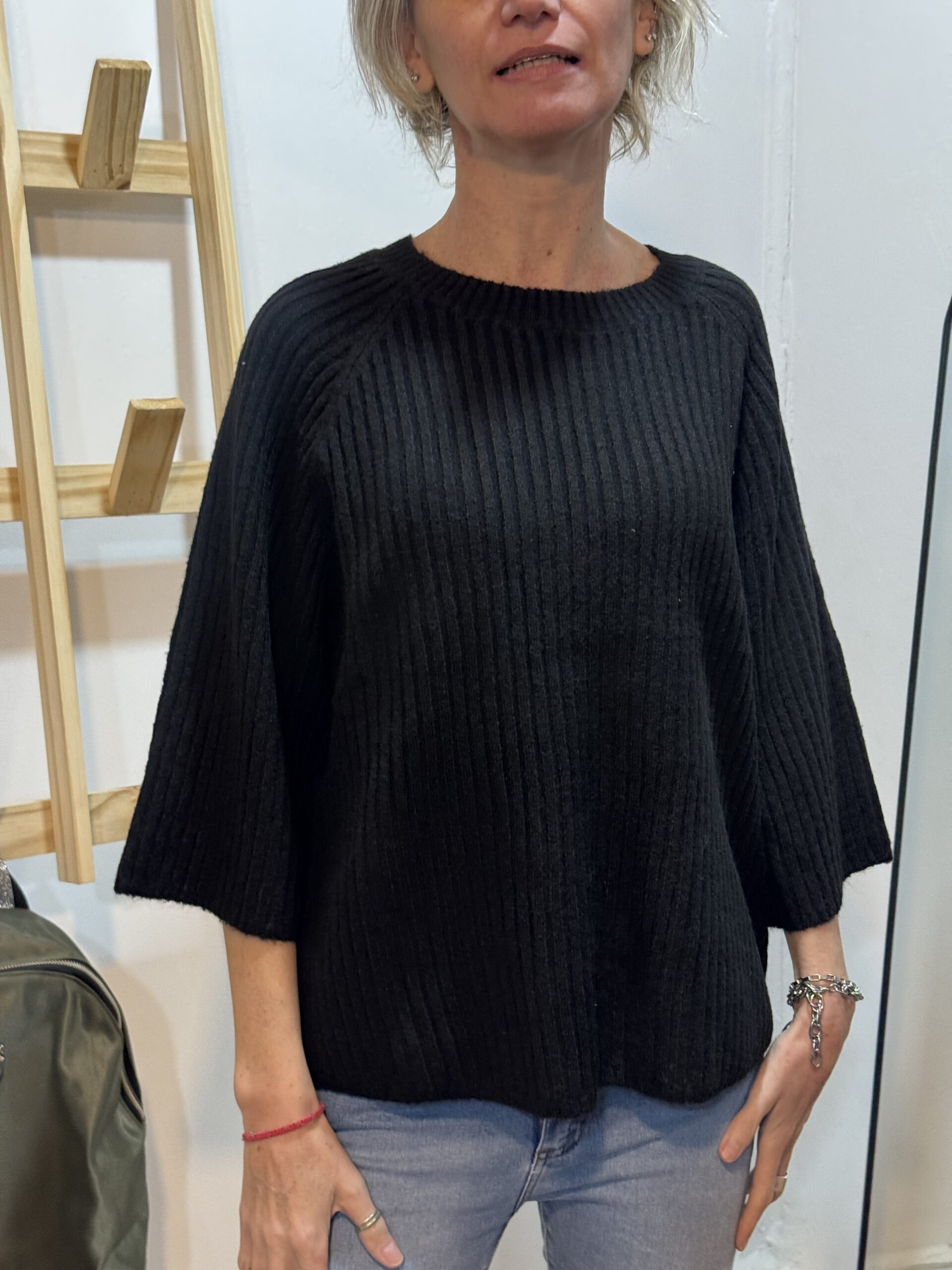 Sweater de escote redondo con manga corta. COMPOSICIÓN. 45% acrílico 45% poliéster 7% lana 3% spandex.